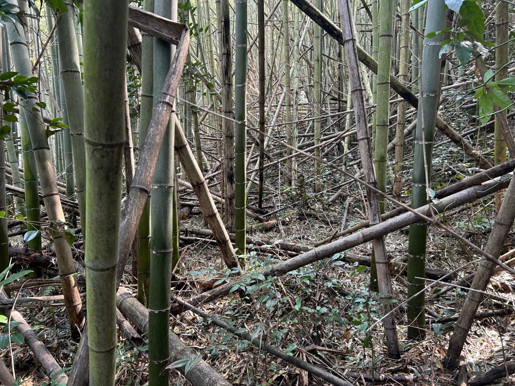 一枚目の写真で解るように、枯れたり、風で薙ぎ倒されたりした竹で大変です。