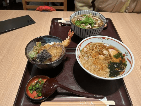 大分行きの便は午後なので、羽田空港で昼食を取る。やはり、日本の食事は美味しい!出汁の香りが嬉しい!