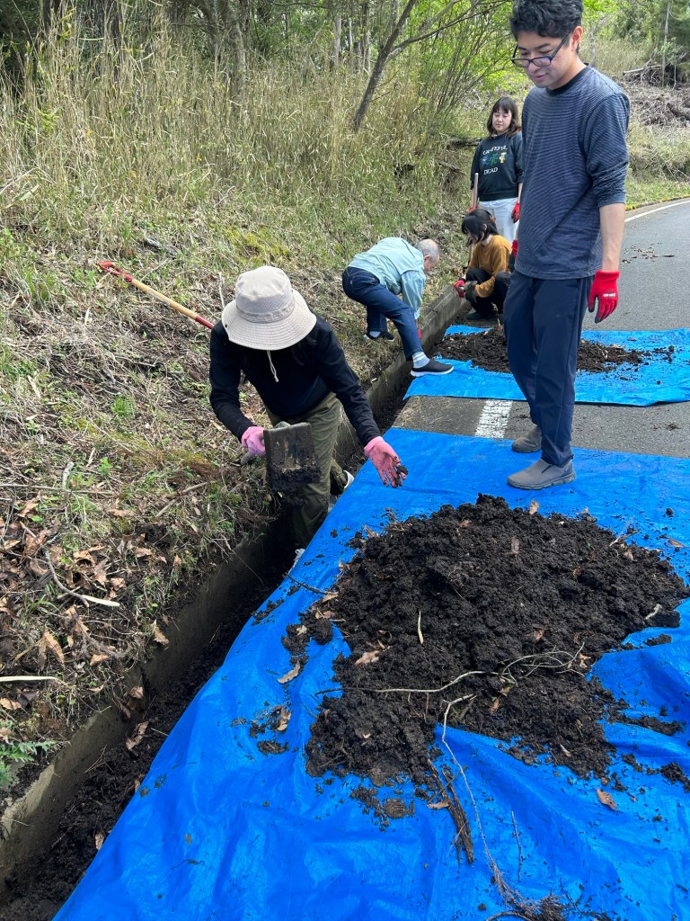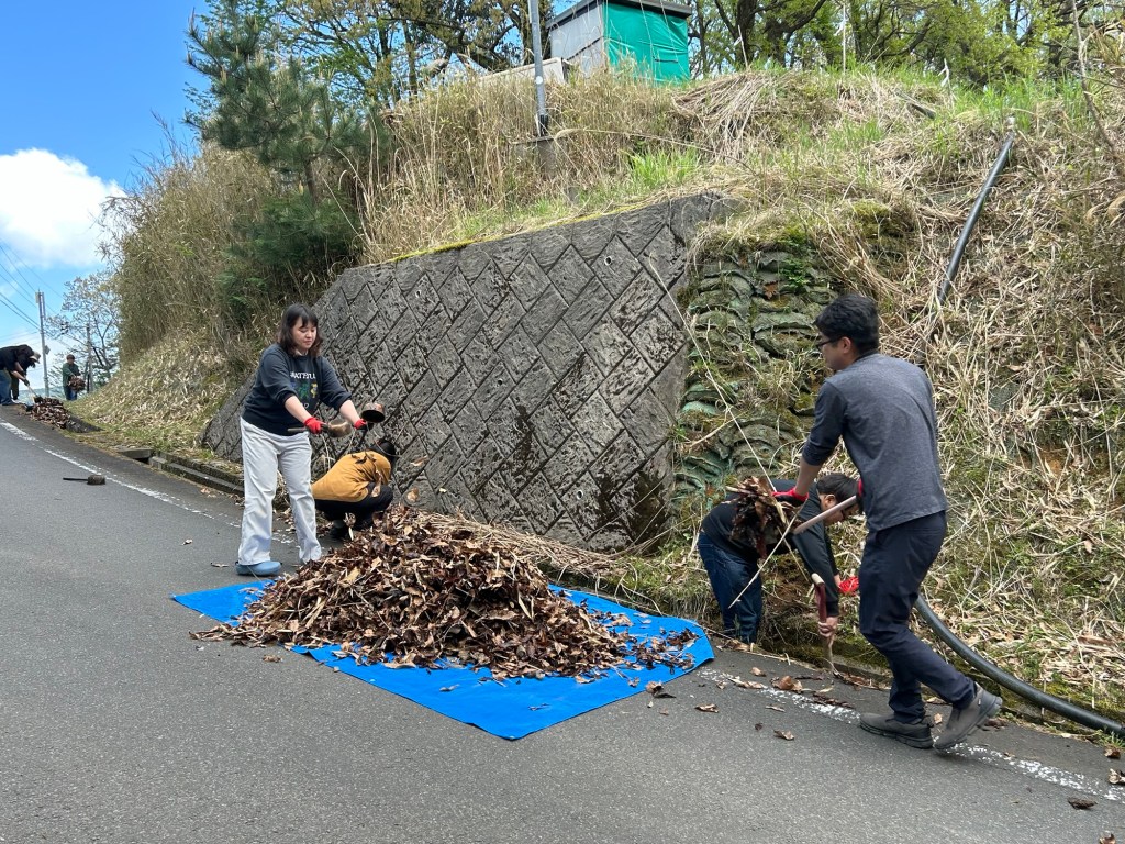 今日は竹を付ける水槽の掃除と、工房に続く道の側溝の掃除です。距離はおおよそ200メートルほど、一人で掃除をしようと思ったら、あまりにも大変ですが、全員でワイワイガヤガヤ言いながらすると、笑いも出で来るし、あっという間に掃除ができました。